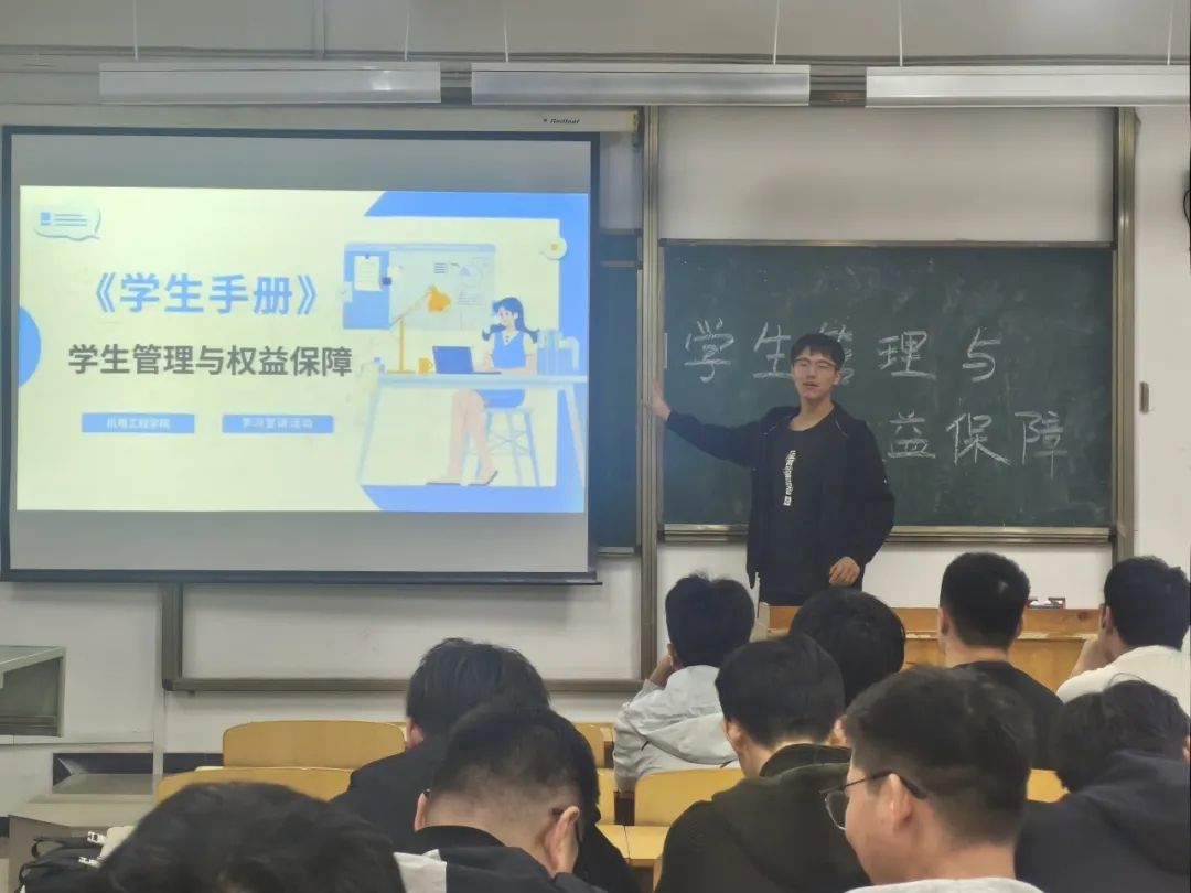 为帮助2025届新生尽快熟悉学校规章制度,明晰自身权利与义务,快速适应大学生活,机电工程学院开展系列新生宣讲活动。由秘书部、生活部、学习部、智创+科技社团、通识协会社团为新生系统解读学生管理与权益保障核心内容。