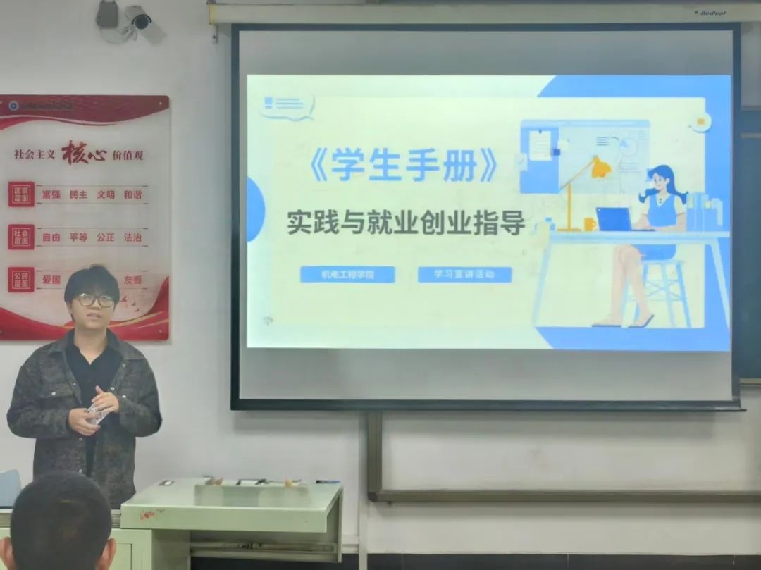 为帮助2025届新生快速适应大学生活,明晰实践与就业创业相关政策,机电工程学院开展系列新生宣讲活动。实践部、就业创业部及工程力学社团聚焦新生最关切的实践活动与职业发展问题对新生展开宣讲。