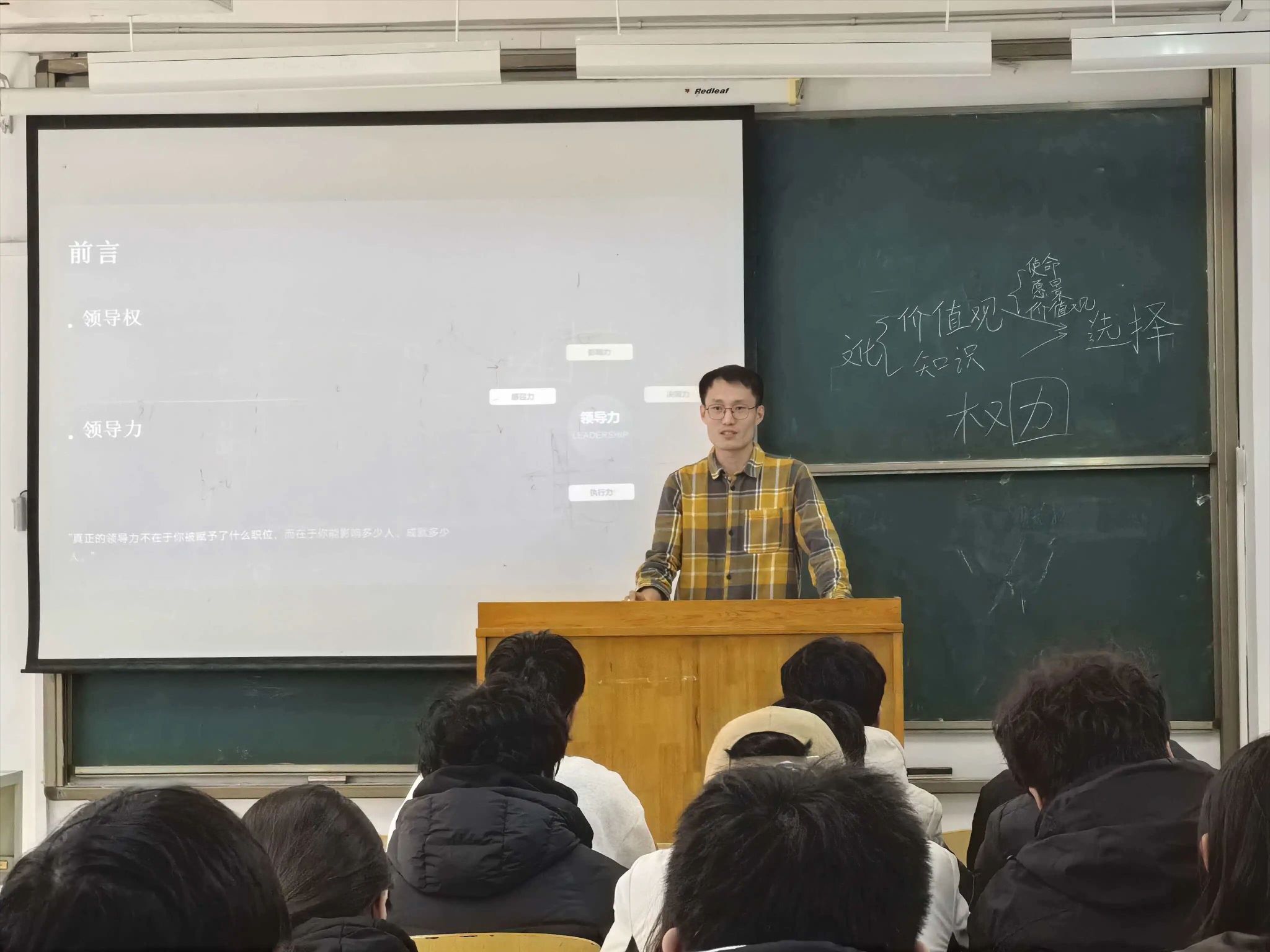 培训中,暴汉卿结合自身创业经历与企业管理经验,通过丰富的历史案例与商业故事,围绕价值观塑造、团队愿景构建、知识能力储备与发展方向选择等方面,系统阐述了团队协作的核心意义与学生领导力的培养路径。他以生动详实的讲解,引导学生骨干深入思考“如何成为一名优秀的团队引领者”,为大家带来了深刻的启发。