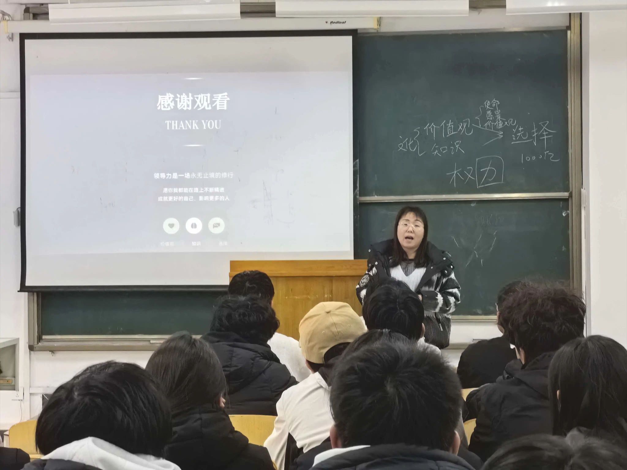 武运卓老师在随后的讲话中,聚焦领导力塑造中的价值引领与实践能力,结合职业规划与个人成长实际,向学生骨干提出了中肯建议。她鼓励同学们积极投身社会实践,在真实环境中认识自我、积累经验、找准定位,避免脱离实际空谈理想。她强调,只有脚踏实地、躬行实践,才能不断锤炼能力、凝聚力量,实现持续成长。