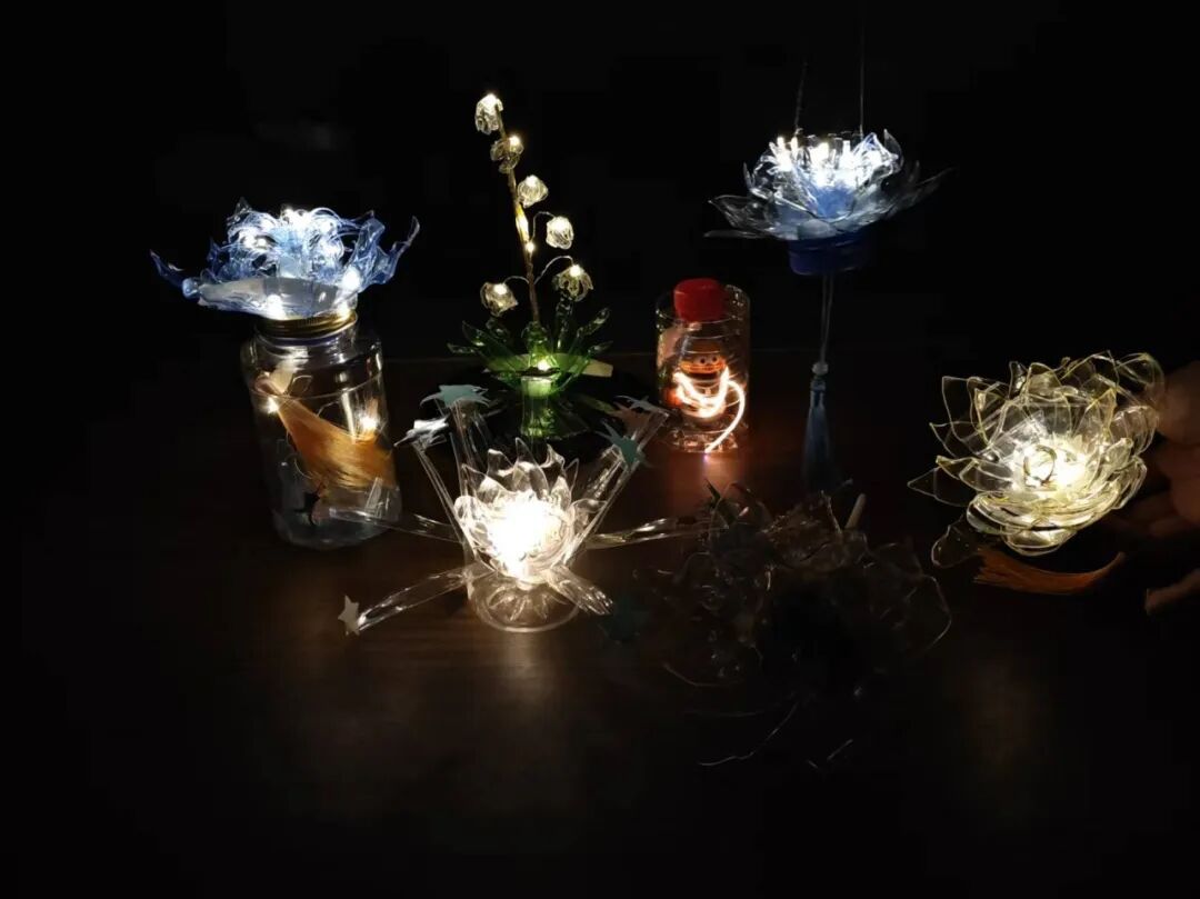笔筒、收纳架、小夜灯……每一件作品都融入环保内核与生活巧思,让废旧资源在校园里重焕新生。