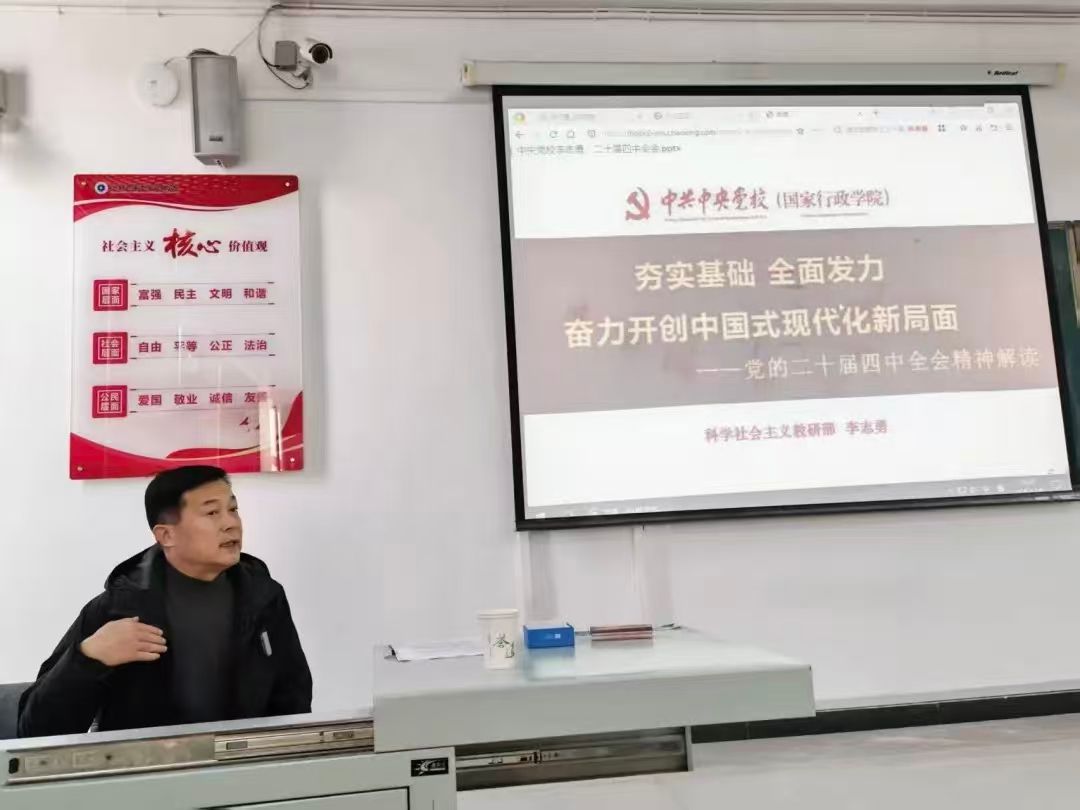 此次党建活动由我院党支部书记张斌作党的二十届四中全会精神宣讲,机电工程学院全体党员共同学习。
