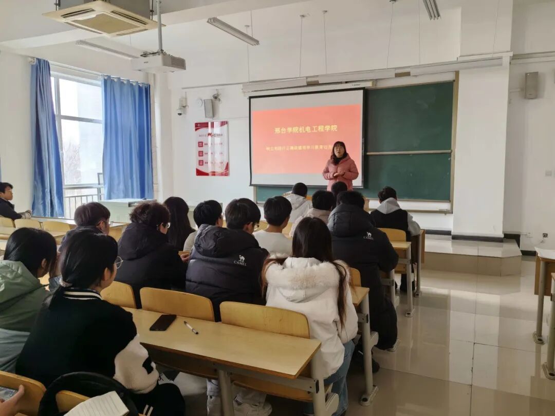 为引导青年学生党员树立和践行正确政绩观,深入学习贯彻党的二十届四中全会精神,3月13日,机电工程学院举办专题培训活动,学院组织委员武运卓老师主讲,全体学生党员参加培训。