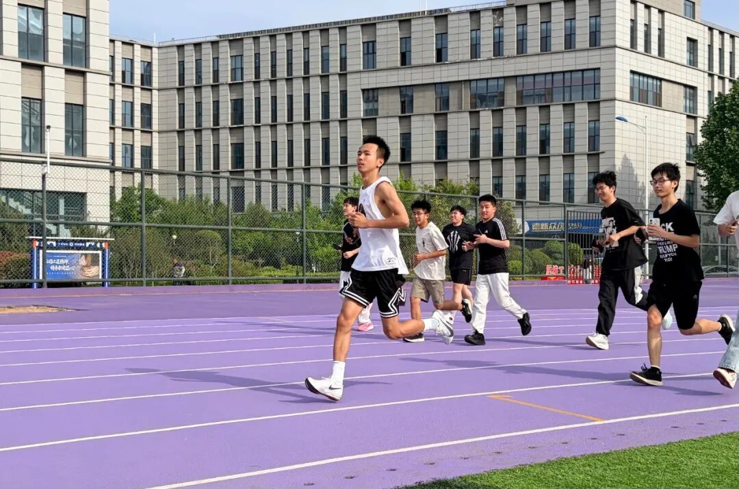起跑线上,学生们蓄势待发,发令枪响,少年们如脱缰野马,在紫色赛道上拉出一道道破风残影。每道身影,都蕴含机电学子不服输的韧劲与热血。